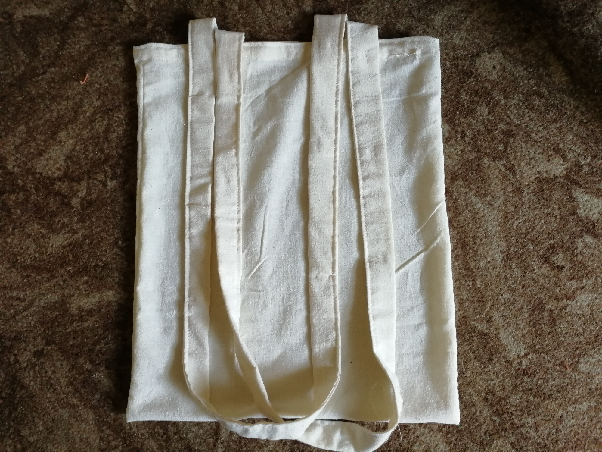 Z biobavlny. Absolútne BIO. Látka je totiž ešte po mojej starej mame. Má krásnu prírodnú farbu. Na tašku sa mi zdala trochu tenká, ale neviem či síce zánovnú látku, ale predsa len viac desiatok rokov odležanú, viem použiť na oblečenie. Možno ešte naberiem odvahu, lebo jej máme ozaj dosť a urobím si letné nohavice, ktoré si z nej viem úplne dokonale predstaviť.