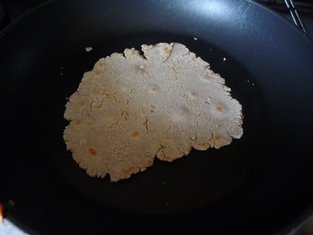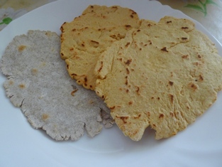 V troche vody rozmiešame hrachovú múku so štipkou soli do cesta vhodného na vaľkanie. Vytiahneme z neho kúsky, ktoré z oboch strán opečieme na suchej panvici. Podávame vlažné alebo studené.