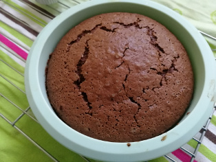 170 g Cake mix Liana na piškótové cesto, 120 g cukru, 2 vajíčka veľkosti L, 120 ml vlažnej vody, 40 ml oleja, 1 polievká lyžica kakaa