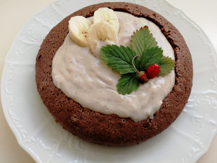 Doplníme kúsok banánu a jahody pre oživenie farby. Môžeme podávať.