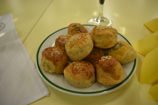 Cesto: Rozkvas vlejeme do misy na miesenie cesta. Pridáme tekuté suroviny a zľahka premiešame. V inej mise si zmiešame sypké suroviny, ktoré potom po lyzžiciach vmiešavame do tekutých. Vytvoríme hladké, vláčne cesto. Vytvoríme gule s priemerom asi 5 cm, ktoré položíme na papierom vyložený plech. Prikryjeme utierkou a na ozaj teplom mieste necháme kysnúť asi 2 hodiny. Potom gule otočíme, zase prikryjeme utierkou a necháme podkysnúť aj tri hodiny na ozaj teplom mieste. Pred vložením do rúry, potrieme horúcou vodou a posypeme práškovým cukrom. Pečieme vo vyhriatej rúre na 220°C asi 10 minút, potom stiahneme teplotu na asi 190°C a dopečieme asi 15 minút.
