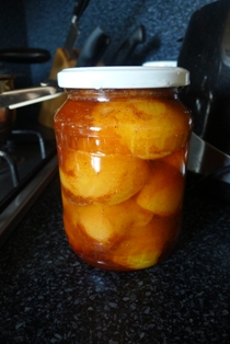Marhule napolíme a povkladáme do 7-decového pohára hore šupkou. Zalejeme 1 polievkovou lyžicou medu a pridáme 2 – 3 klinčeky. Zalejeme vodou. Uzavrieme. Vložíme do hrnca a nalejeme okolo pohárov vodu asi do polovice výšky pohárov. Necháme pod pokrievkou zovrieť a plameň vypneme. Necháme v hrnci vychladiť asi 20 minút. Potom vyberieme a necháme obrátené hore dnom vychladnúť.