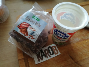 Potrebujeme: 125 ml šľahačky, 1 polievková lyžica karobu, 1 polievková lyžica posekaných kakaových bôbov, 400 g sladkých zemiakov