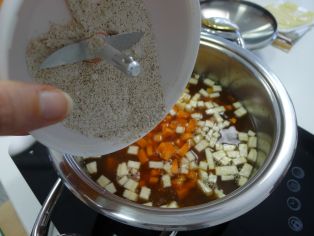 Zatiaľ si pripravíme ďalšie suroviny. Rozmixujeme si fazuľu na prášok - ktorý použijeme na zahustenie polievky