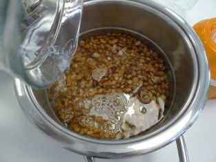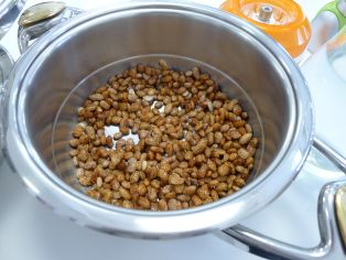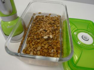 Vyvákuujeme si vo vode fazuľu. A necháme vo vákuu asi 20 minút. Potom otvoríme a znova vyvákuujeme na ďalších 20 minút. Takto získame efekt namočenia fazule na 12 hodín vo vode.