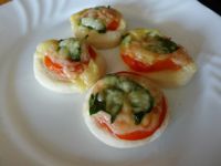 Vo vode si necháme vykysnúť z droždia kvások. Vlejeme olej. Potom vsypeme po lyžiciach múku a miešame. Asi v polovici prisypeme aj soľ. Vypracujeme tuhšie vláčne cesto. Cesto si vyvaľkáme na tenko. Vykrojíme z neho kruhy s priemerom 5-6 cm. Kruhy položíme na plech vyložený papierom. Na každý kruh položíme - vtlačíme kúsok nakrájanej paradajky na krúžky. Položíme lístok špenátu a nakoniec kúsok syra. Necháme podkysnúť asi pol hodinu na teplom mieste. Potom vložíme do rúry vyhriatej na 200 °C a pečieme asi 12 - 14 minút.