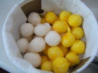 Potom vytvarujeme guličky s priemerom asi 1 cm. Pripadne ich trochu vytvarujeme do vajíčka.