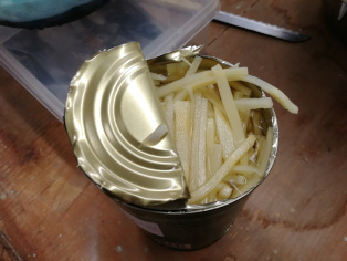 P.S.: Ak sa pozeráte na konzervu s bambusom ako je otvorená, nuž nožom. Žiaci zabudli doniesť otvárak na konzervy. Nuž som poprosila pána školníka, aby nám ju otvoril nožom ako sme to kedysi robili. Nuž, žiaci dostali školenie ako si otvoriť konzervu týmto spôsobom.