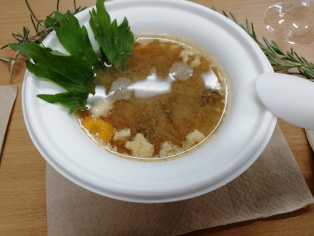 Vodu v hrnci necháme zovrieť. Huby pokrájame na polovicu. Namočíme ich do studenej vody na asi pol hodiny. Mrkvu nakrájame na menšie kúsky. Podobne aj tofu. Zlejeme bambus z tekutiny. Do vriacej vody vsypeme mrkvu, bambus, tofu a zliate huby. Necháme variť na miernom plameni asi štvrťhodiny.
