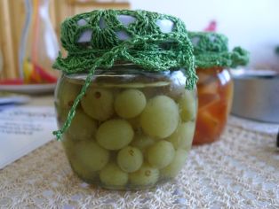 Najprv si pripravíme nálev z 1 litra vody, 300 g rafinovaného cukru a šťavy z polovičky citróna. Nálev prihrejeme tak, aby sa cukor rozpustil, ale nevaríme ho. Do menších pohárikov poukladáme očistené menšie tvrdšie bobuľky. Bobuľky zalejeme opatrne vychladnutým nálevom. Uzavrieme. Sterilizujeme pri 80°C asi 15 minút. Ihneď vyberieme z hrnca, aby rýchlejšie vychladli a bola najmenšia pravdepodobnosť, že sa bubuľky rozvaria.