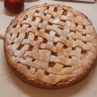 Asi dve tretiny cesta vyvaľkáme a vsunieme do pekáča s vyššími okrajmi. Cesto vytiahneme aj po okrajoch až von z pekáča. Vložíme hruškovú zmes. Zo zvyšku cesta narežeme pásy, ktorými prikryjeme hrušky akoby sme vytvorili mriežku. Pečieme vo vyhriatej rúre na 180 °C asi 45 minút.