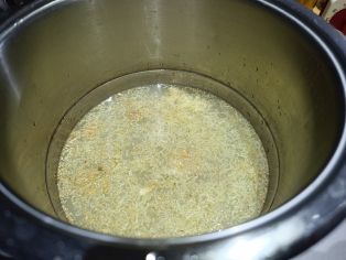 Pridáme 150 g krupicového cukru. Zľahka premiešame, aby sa cukor rozpustil. Necháme vychladiť na asi 20 °C. potom cez prežehlené plátno scedíme do kameninovej čistej nádoby alebo sklenenej.