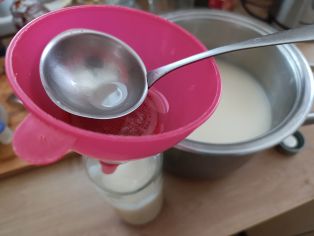 Prelejeme do sklenených fliaš, uzavrieme a uchovávame v chlade. Podávame chladené s ľadom a citrónom - akoby whisky. Pripadne pridáme lyžicu plnotučného mlieka.