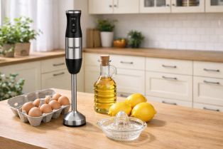 My používame ponorný mixér s vysokými otáčkami a úzku vysokú sklenenú nádobu.