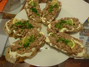 Celozrnný chlieb nakrájame na krajce. Potrieme maslom - pozor nie margarínom alebo nejakým rastlinným maslom. Z konzervy vyberieme treščiu pečeň, ktorú popučíme vidličkou a zlejeme z oleja. Pekne ju poukladáme na omaslený chlebík. Posypeme posekanou pažítkou a mierne pokvapkáme citrónovou šťavou. Necháme asi 15 minút postáť, aby sa trochu chute spojili a potom podávame s horúcim čiernym čajom.