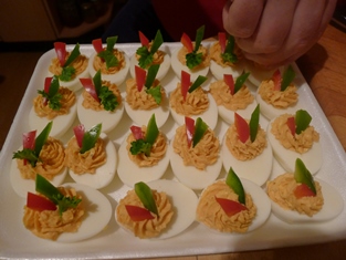 Prichystáme si 200 g filet z lososa, 15 vajíčok uvarených na tvrdo, 125 g masla, 2 polievkové lyžice holandskej omáčky, 4 polievkové lyžice vývaru, soľ, mleté biele korenie a pár paprík na ozdobenie.{SCOpenGraph image=http://www.dobre-napady.sk/images/clanky/varime-so-sefkucharom/vajicka/plnene_vajicka_losos12.jpg}