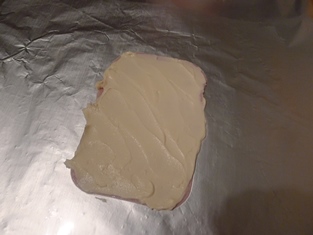 Po stuhnutí šunku nakrájame na kúsky a poukladáme na tanieriky. Môžeme prizdobiť syrovým krémom na jednom konci.