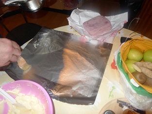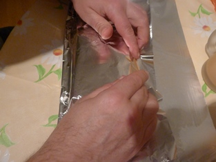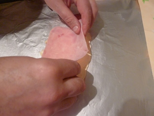 Natieranie želatinou je potrebné, aby sa alobal čo najmenej prichytil ku šunke - aby sa nám lepšie vyberala. Pri uzatváraní alobalu musíme však dávať pozor, aby sme udržali tvar a šunku neposunuli.