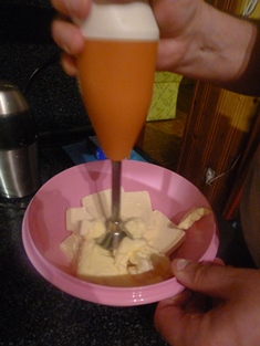 Najprv si pripravíme želatinu v 350 ml teplej vody. Syrokrémy s maslom a trochou soli vymiešame. Pridáme aj asi 1 polievkovú lyžicu tuhej želatiny.