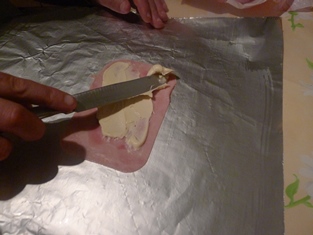 Potrebujeme: 2 veľké Syrokrémy, 1 veľké maslo, soľ, 1 silnú želatinu (taká, čo sa používa na výrobu tlačenky), 12 plátkov šunky, alobal na grilovanie - je pevnejší {SCOpenGraph image=http://www.dobre-napady.sk/images/clanky/varime-so-sefkucharom/doboska/doboska17.jpg}