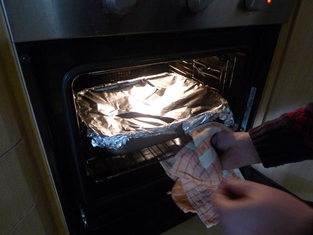 Potom alobal zložíme a necháme dopiecť do ružova - asi 15 minút.