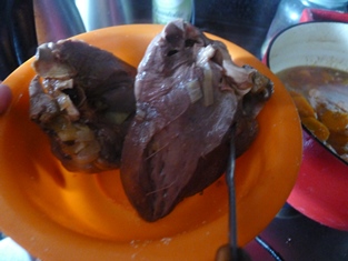 Potom srdce vyberieme. vývar necháme ešte bez pokrievky trochu odvariť a nakoniec zeleninu rozšľaháme. Podávame na tanieri srdce na omáčke s ražným chlebom alebo varenými zemiakmi.