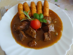 Podávame s varenými zemiakmi alebo kroketami, knedľou či prílohovými haluškami.