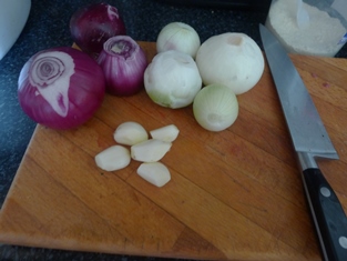 3 menšie červené cibule, 3 menšie žlté cibule, asi 5 strúčikov cesnaku, 3 polievkové lyžice oleja, paradajkový pretlak, 3 listy bazalky, 2 cm dlhá vetvička rozmarínu, 1 čajovú lyžičku soli