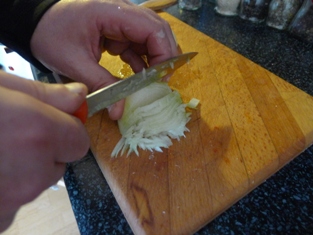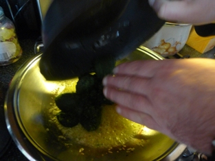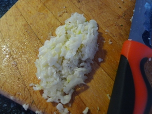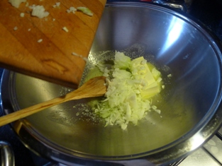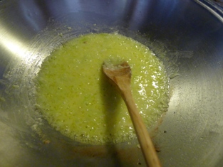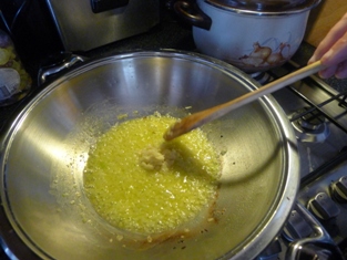 Na roztopenom masle si speníme na drobno nakrájanú cibuľku. Pridáme polovicu na jemno posekaného cesnaku.