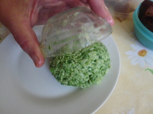 Misku si vylejeme prúdom vody. Natlačíme do nej syr, ktorý vyklopíme na tanier. Podávame posypané syrom a nakrájanou paradajkou. Ako nápoj je vhodné mlieko.