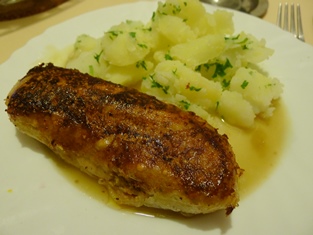 Podávame s varenými zemiakmi posypanými petržlenovou vňaťou.