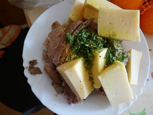 Dnes budeme používať mäso aj zeleninu, ktorú sme použili na urobenie dobrého vývaru s haluškami.
