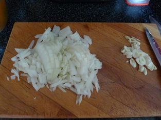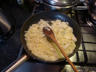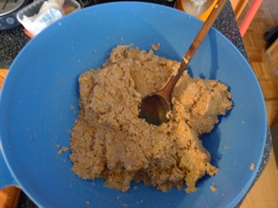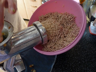 Na troche masla opražíme do sklovita cibuľu a cesnak. Mäso so zeleninou pomelieme. Spolu s maslom a opečenou cibuľou zmiešame do ucelenej hmoty. Osolíme a okoreníme.