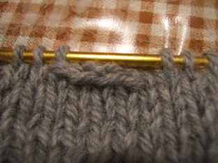Na lícovej strane uzavrieme napríklad 4 očká na mieste, kde chceme mať gombíkovú dierku. Riadok dopletieme vzorom, ktorým pletieme. Z obrátenej strany pletieme zase určeným vzorom, kým neprídeme k uzavretým očkám. Tam nahodíme na ihlicu 4 očká ako na začiatku pletenia. Riadok dokončíme podľa vzoru. Nasledujúci lícový riadok pletieme podľa vzoru. Nahodené očká v predošlom riadku nad otvorom gombíkovej dierky upletieme obrátene.