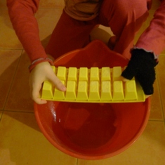Do vedra si dáme studenú vodu a trochu kociek ľadu. Vsypeme zabalené igelitky rovno z rúry, aby sme ich prudko schladili.